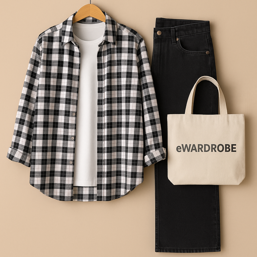 CHECK SHIRT WITH INNER AND BLACK WIDE LEG JEANS