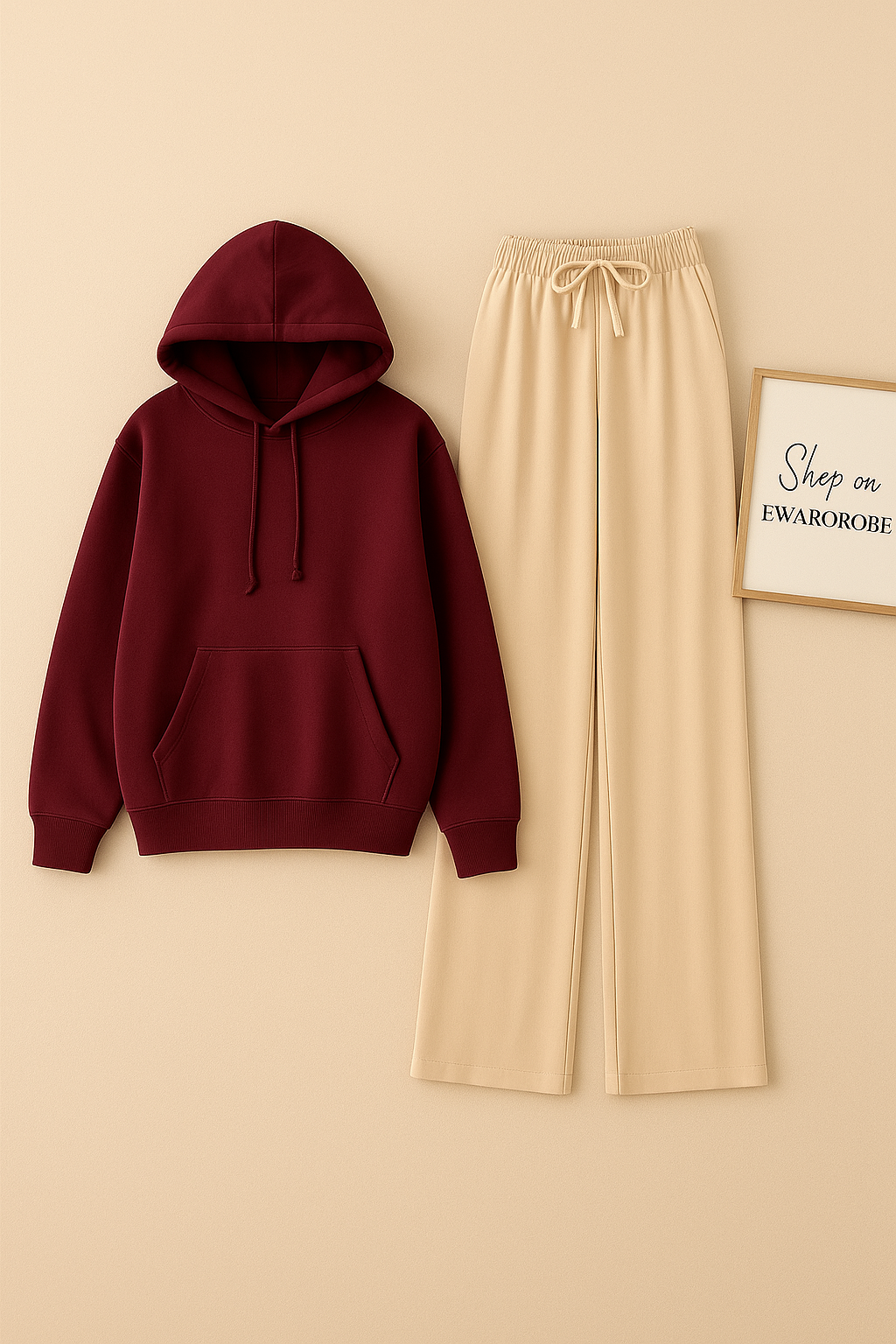 PLAIN MAROON HOODIE WITH BEIGE FLAPPER